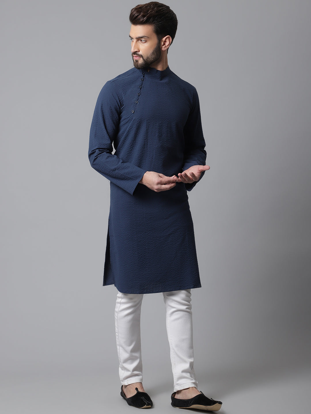 Even Apparels Blue Solid Kurta With Band Collar About the product: Solid kurta with band collar. Additional Information: Fabric: Pure Cotton ...