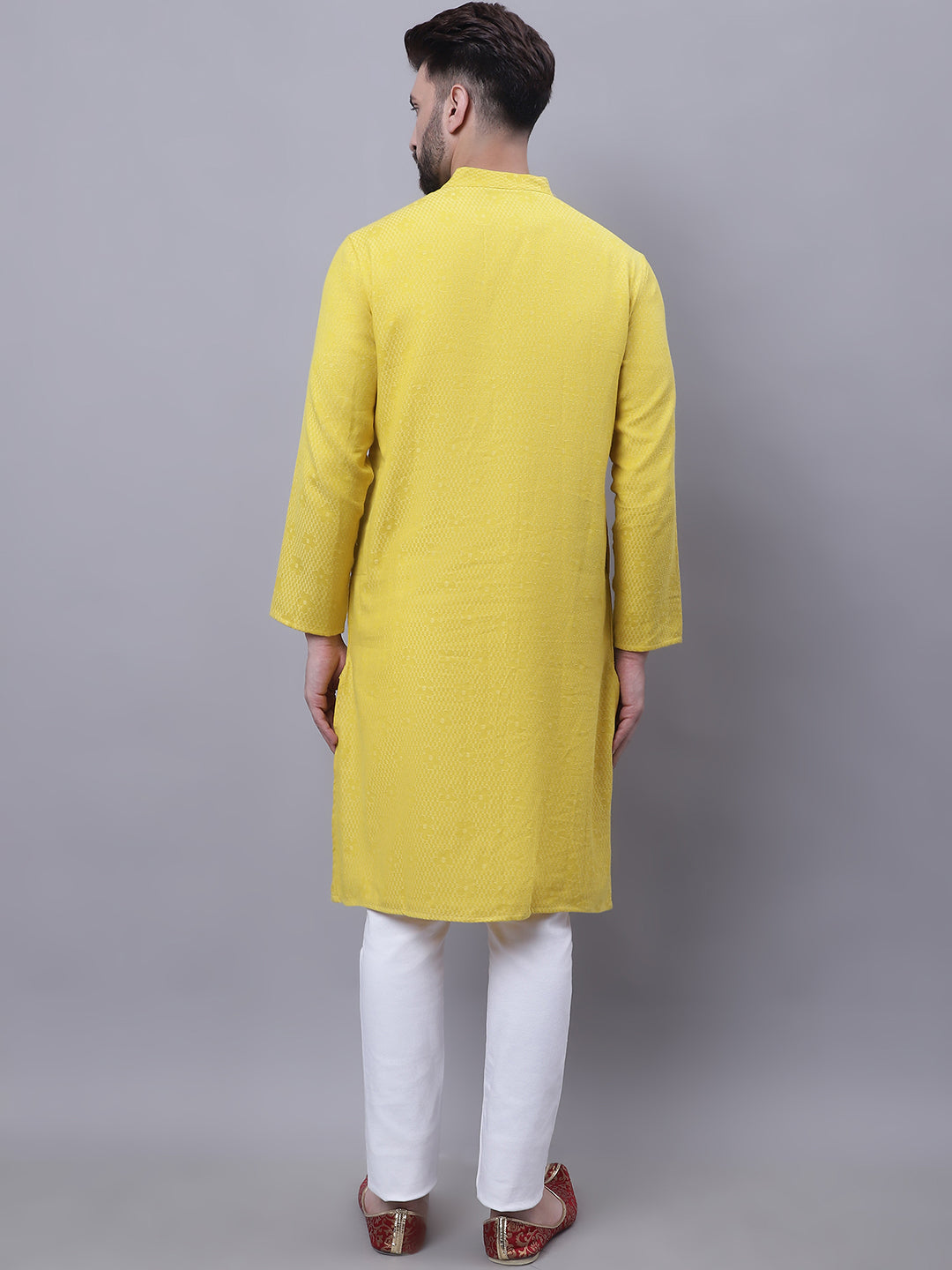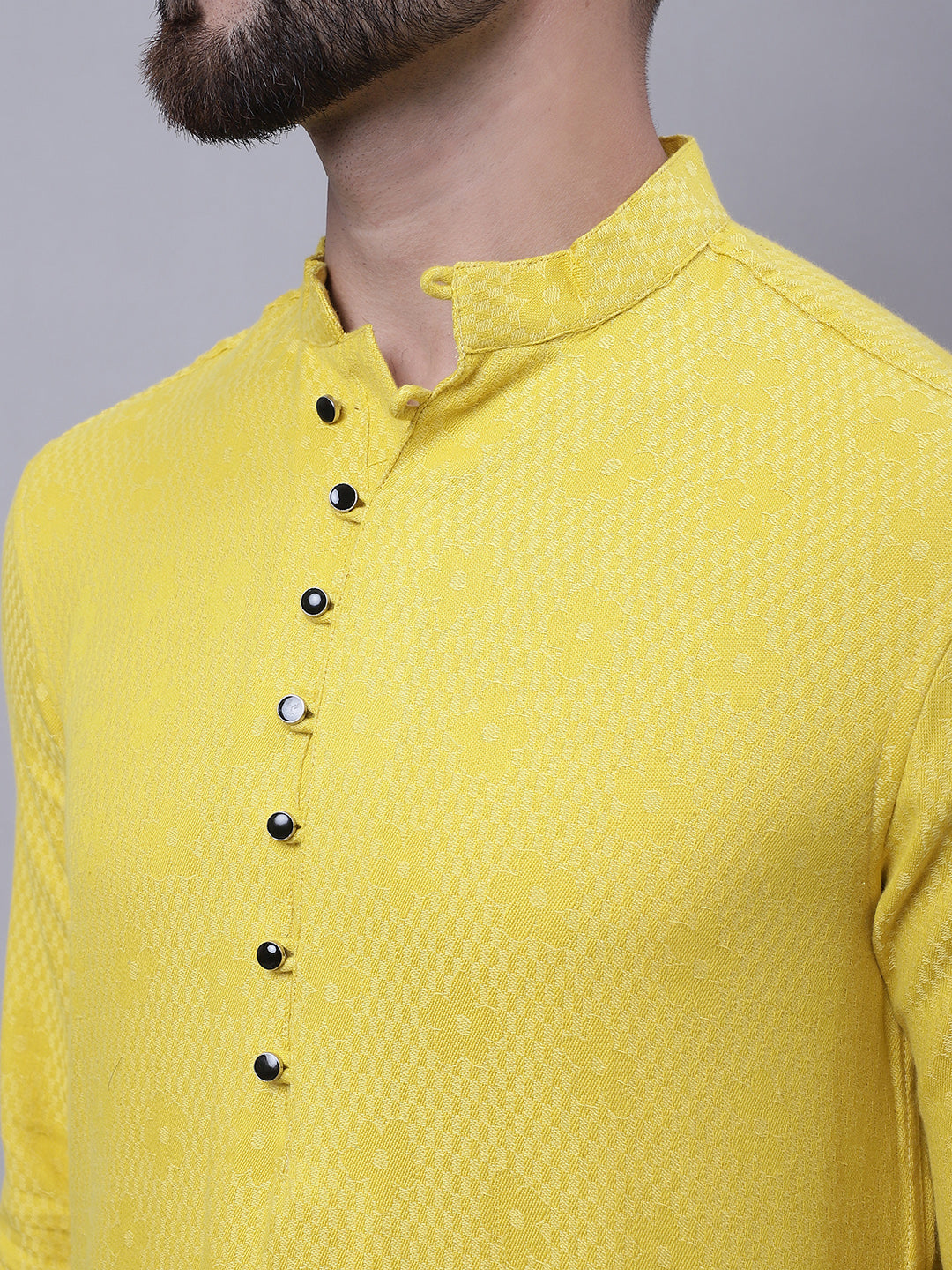 Even Apparels Yellow Pure Cotton Kurta With Band Collar