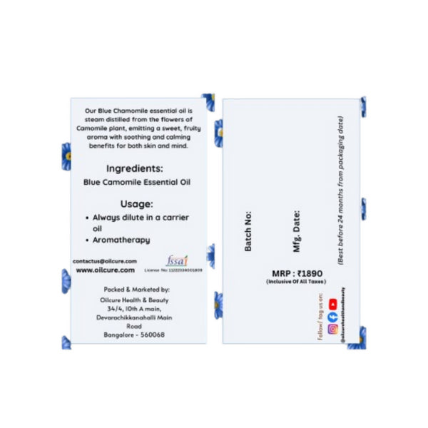 Oilcure Blue Camomile Essential OilAbout The Product: Blue Camomile Oil, also known as German Chamomile, is steam-distilled from the flowers of Mat...