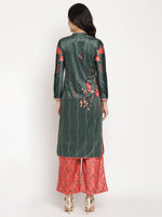 Ahalyaa Women's Dark Green Color Digital Print Velvet Kurta With Palazzo - XS