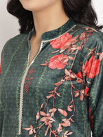 Ahalyaa Women's Dark Green Color Digital Print Velvet Kurta With Palazzo