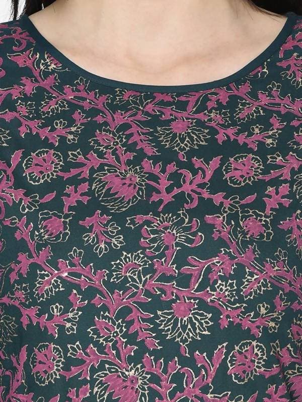 Aniyah Rayon Teal Blue Color Block Print Anarkali Palazzo Set (AN-220K) - S