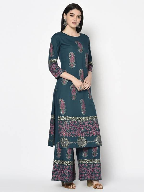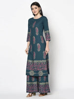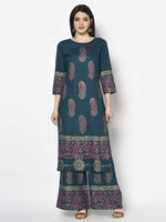 Aniyah Rayon Teal Blue Color Block Print Straight Kurta (AN-224K):SPECIFICATIONS:- COLOUR:-       Teal Blue FABRIC:-        100% Rayon/Viscose SIZE...