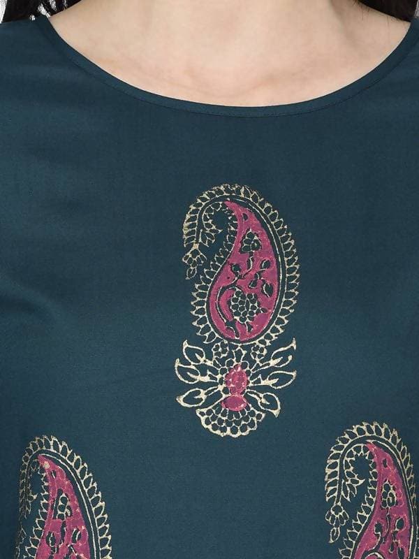 Aniyah Rayon Teal Blue Color Block Print Straight Kurta Palazzo Set (AN-223K) - S