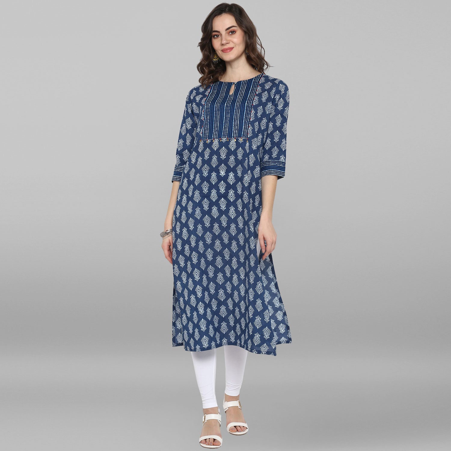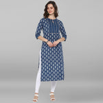 Janasya Blue Cotton Block Print Straight kurta - Distacart