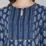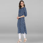 Janasya Blue Cotton Block Print Straight kurta