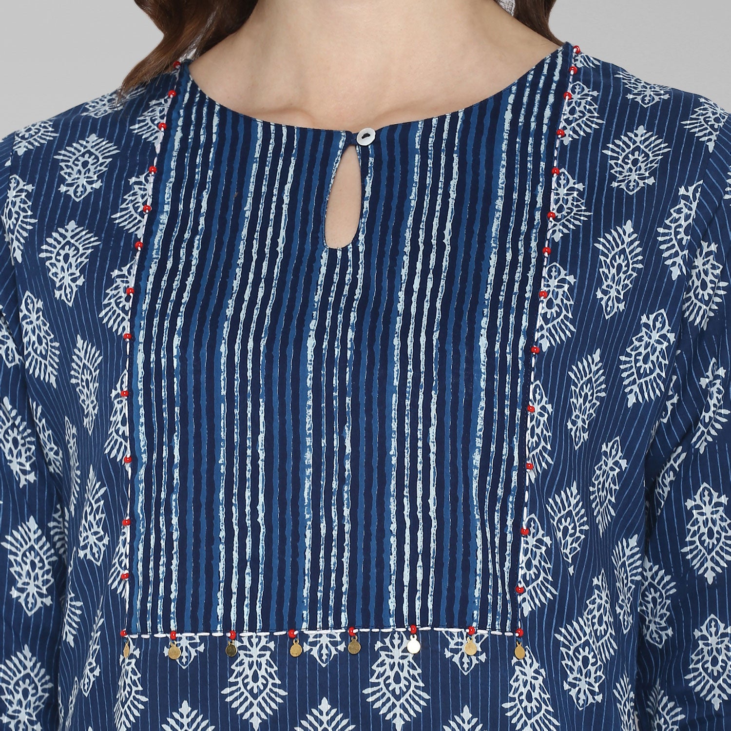 Janasya Blue Cotton Block Print Straight kurtaAbout the Product: Color: Blue Fabric: Cotton Work/Pattern: Block Print Occasion: Casual Length ...