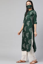 Juniper Women's Jadegreen Rayon Slub Bandhani Straight Kurta Perfect For Fusion Clothing With A Traditional Twist, Trendy Silhouette And Latest Styles
