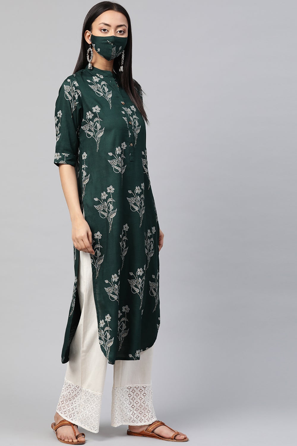 Juniper Women's Jadegreen Rayon Slub Bandhani Straight Kurta