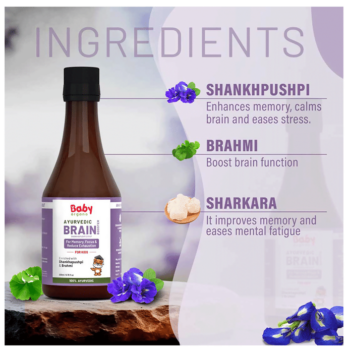 Babyorgano Brain Booster Shankhpushpi Syrup For Kids: Baby Organo Brain Booster Shankhpushpi Syrup is an Ayurvedic preparation formulated using p...