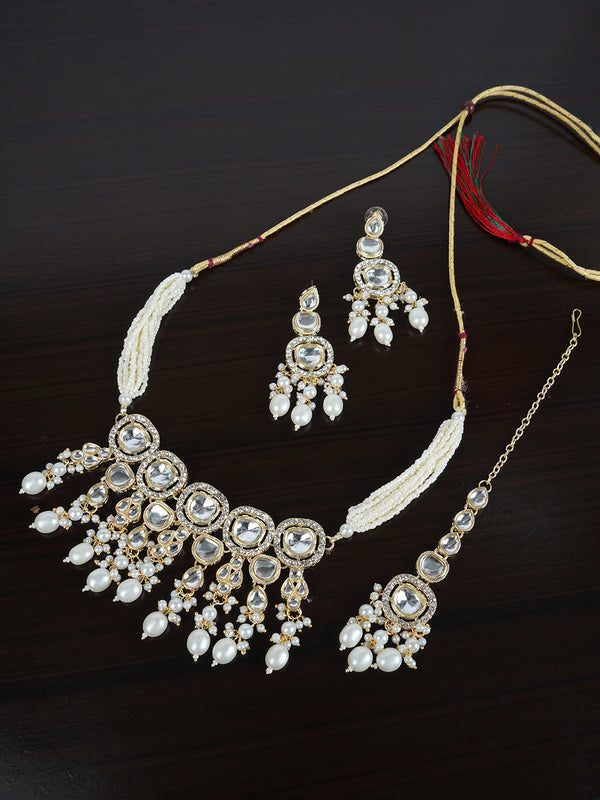 Divisha Alloy Gold-plated White Artificial Pearl Jewellery Set