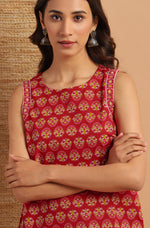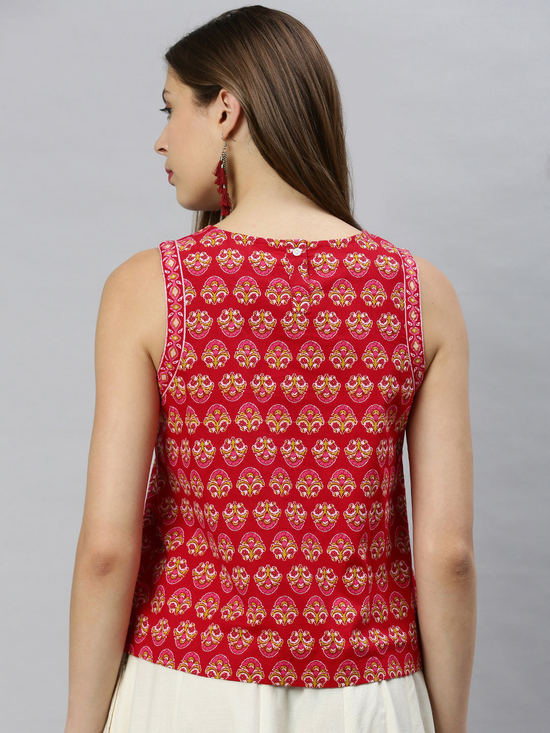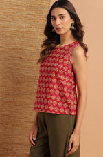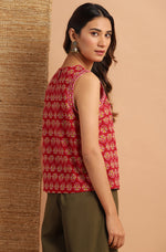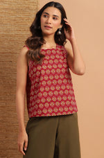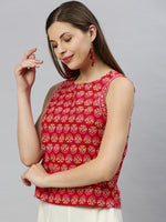 Elevate your daily wear look by this top from Janasya. Made from cotton this top has ethnic floral print and a button opening in backside. Look stylish in this sleeveless top when paired with denims and flats.