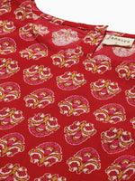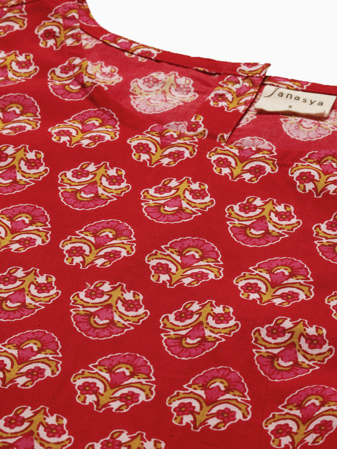 Janasya Women's Red Cotton Floral Print Regular Top Elevate your daily wear look by this top from Janasya. Made from cotton this top has ethnic f...
