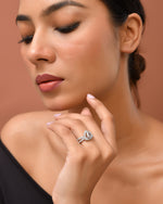Silver-plated AD stone-studded adjustable finger ring, crafted with intricate detailing and sparkling stones. Designed for a perfect fit, this elegant ring adds a touch of sophistication and glamour to any outfit. Lightweight, durable, and versatile, it is ideal for casual wear, festive occasions, or gifting, making it a stylish addition to your jewellery collection.Legal Disclaimer :Product color may slightly vary due to photographic lighting sources or your monitor settings.