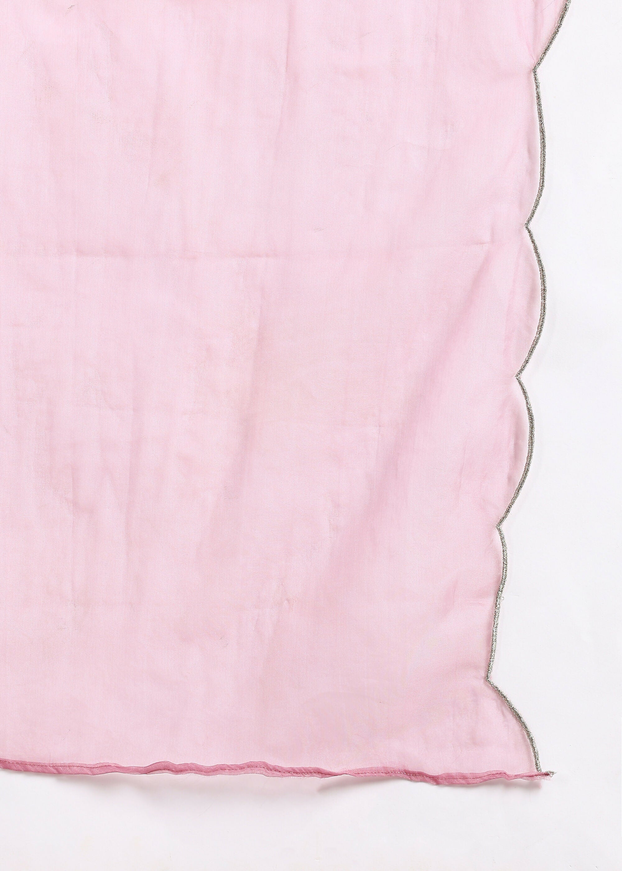 Make a graceful statement in this lavender embroidered kurta set with dupatta. The kurta is designed with a V-neckline enhanced by delicate embroidery, subtle all-over motifs, and paired with ankle-length straight pants. Completing the set is a lavender organza dupatta with scalloped edges, offering a flowy and feminine touch.Perfect for festivals, wedding functions, or parties, this set blends traditional charm with contemporary elegance.