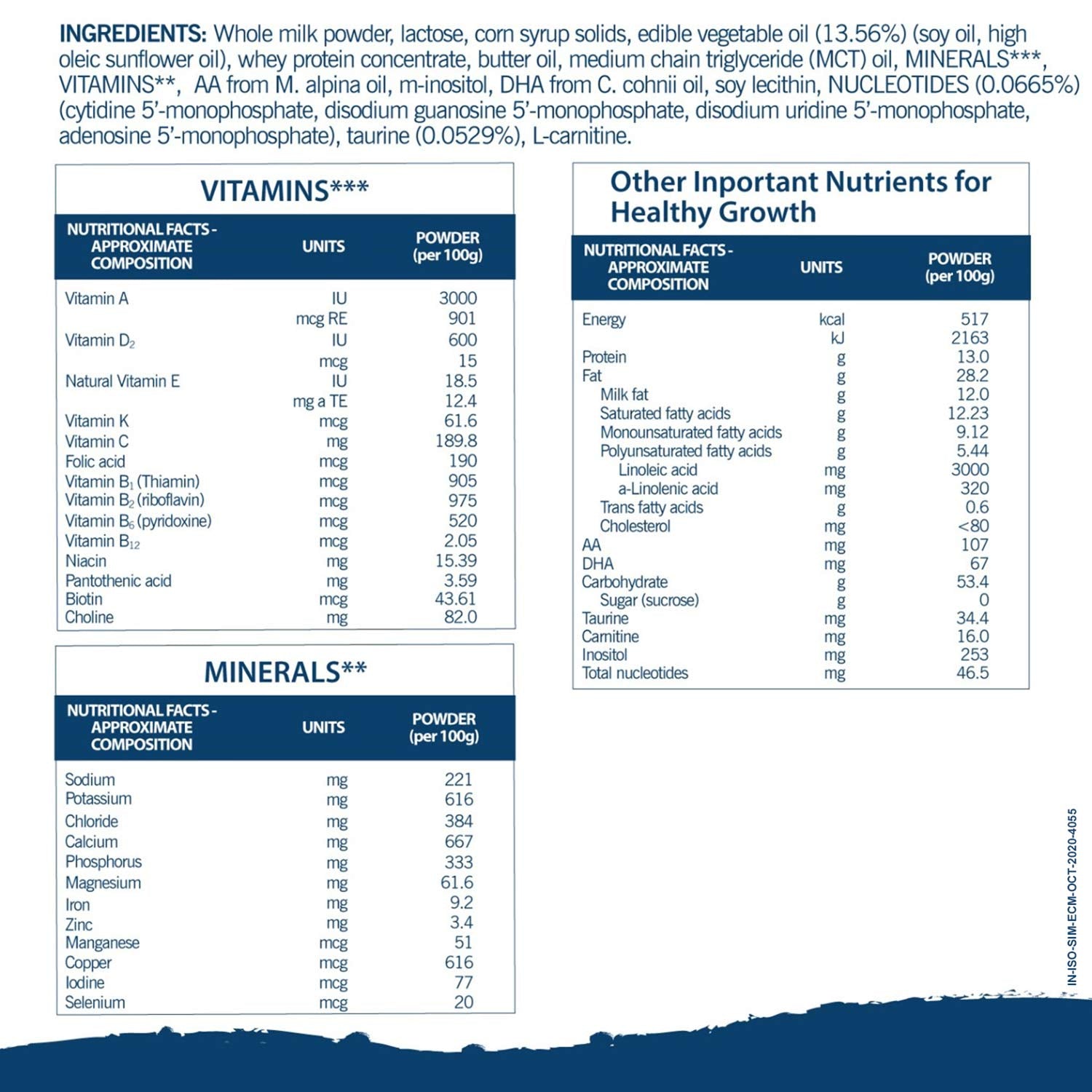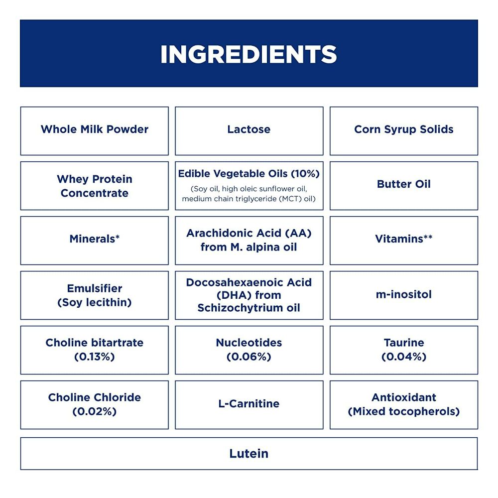 • Similac Neosure powder Ingredients are Whole milk powder, lactose, corn syrup solids, Edible vegetable oil (soy oil, high oleic sunflower oil)