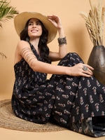 InWeave Black Booti Rapid Print Backless Kurta Sharara Set