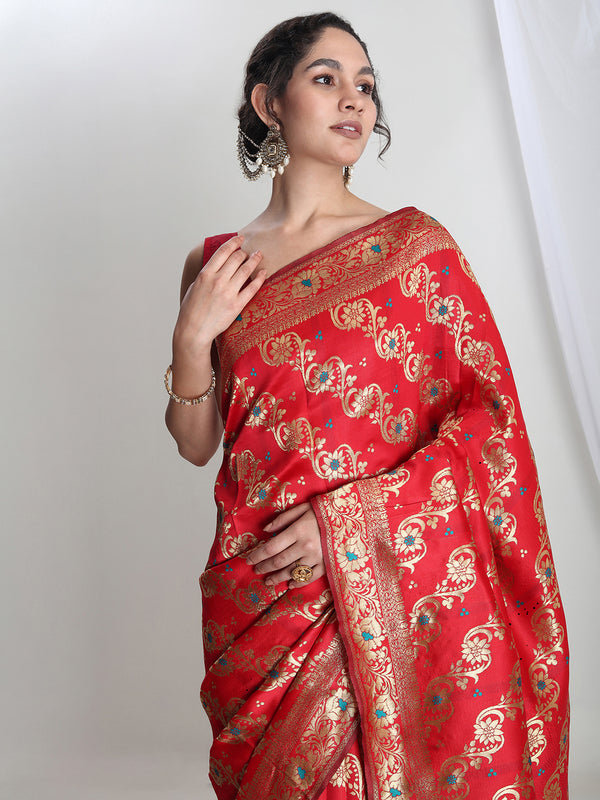 Janasya Red Silk Blend Floral Jacquard SareeAbout the Product: Saree Color: Red Saree Fabric: Silk Blend Saree Pattern: Floral Legal Disclaimer:...