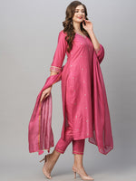 Kalini Ethnic Motifs Embroidered Sequinned Kurta With Trousers & Dupatta Product Details Pink embroidered kurta with trousers & dupattaK...
