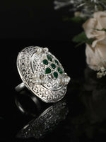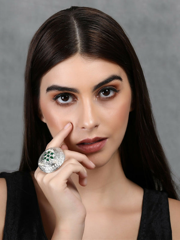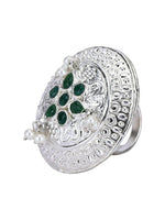 Joban Fashion Women Green Stone Silver Tone RingAbout the Product:This Versatile Handcrafted pure silver tone with Intricate patterns and spark Sto...