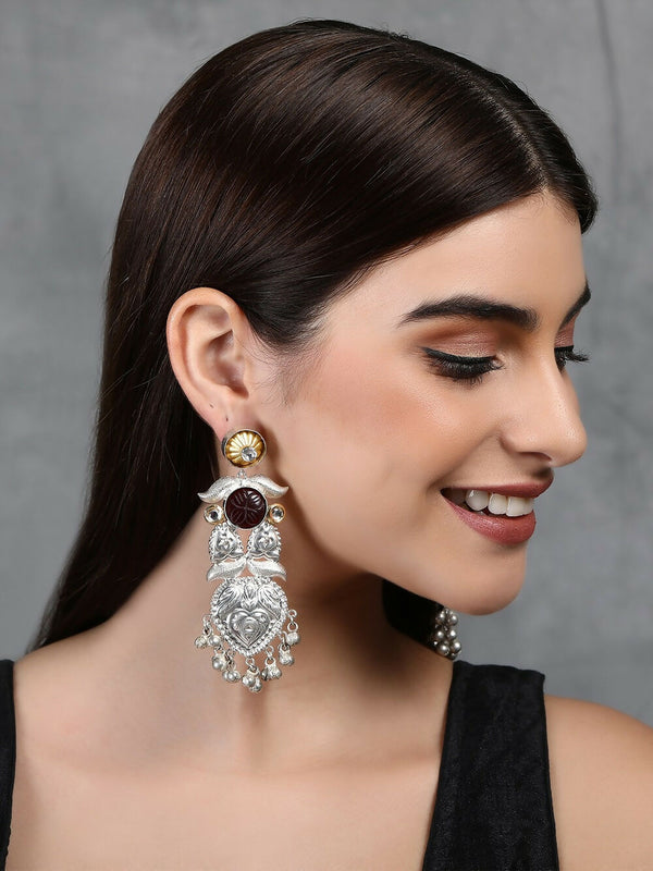 Joban Fashion Women Long Pattern Silver Tone EarringsAbout the Product:This Versatile Handcrafted pure silver tone with Intricate patterns and spar...
