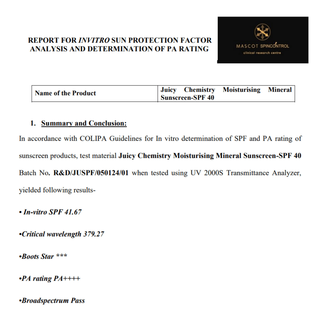 INDIA’s First Certified Organic Sunscreen with SPF 40, Broad Spectrum UVA/UVB Protection and PA++++ (clinically tested*) with Ecocert COSMOS Approved Titanium Dioxide (non-nano)dispersion that offers unprecedented protection.