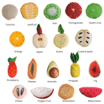 Children can use this set to pretend they're preparing a fruit salad, running a grocery store, or having a picnic. They can explore the different textures and shapes of fruits, slice them in their imagination, and create pretend meals for friends and family. This set pairs perfectly with play kitchens, grocery store playsets, and even pretend picnics, offering countless role-playing opportunities.