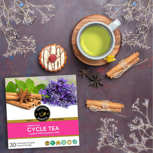 Teacurry Period Tea or Cycle Tea consists of a powerful blend of Lavender sourced from the Kashmir Valley in form of Lavandula Stoechas, Ashoka from Rajasthan in form of Saraca Asoka, Asafetida from Punjab in form of Hing Kabuli Sufaid, Himalayan Nettle from Uttarakhand, Mighty Ginger from Orissa, Cassia cinnamon from Meghalaya, Krishna Tulsi from Sasangir, Foenum Graecum Fenugreek (handpicked) from Rajasthan, Turmeric Curcumin Longa sourced from farmers in Andhra Pradesh, Fennel from Gujrat and Mentha Spicata Spearmint from West Bengal.