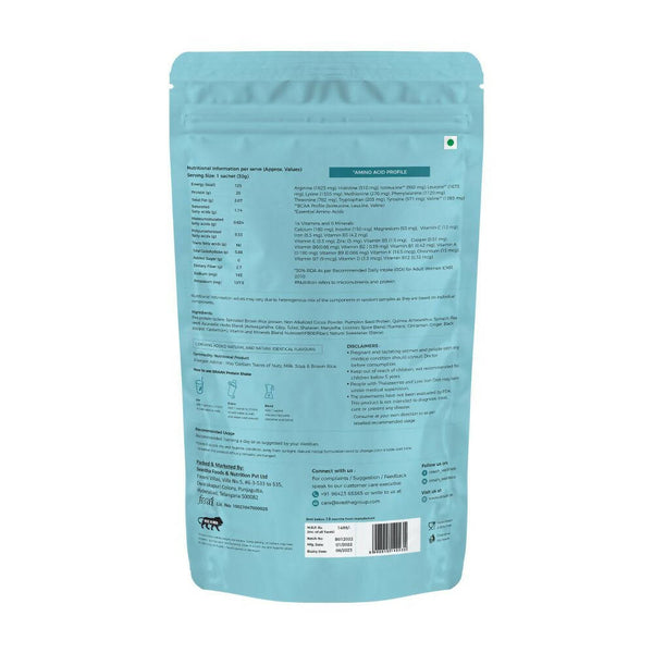 • Oraah Protein powder meets 30% of a woman’s daily nutritional needs. This all-natural blend is filled with nutritional benefits and the goodness of Ayurveda.