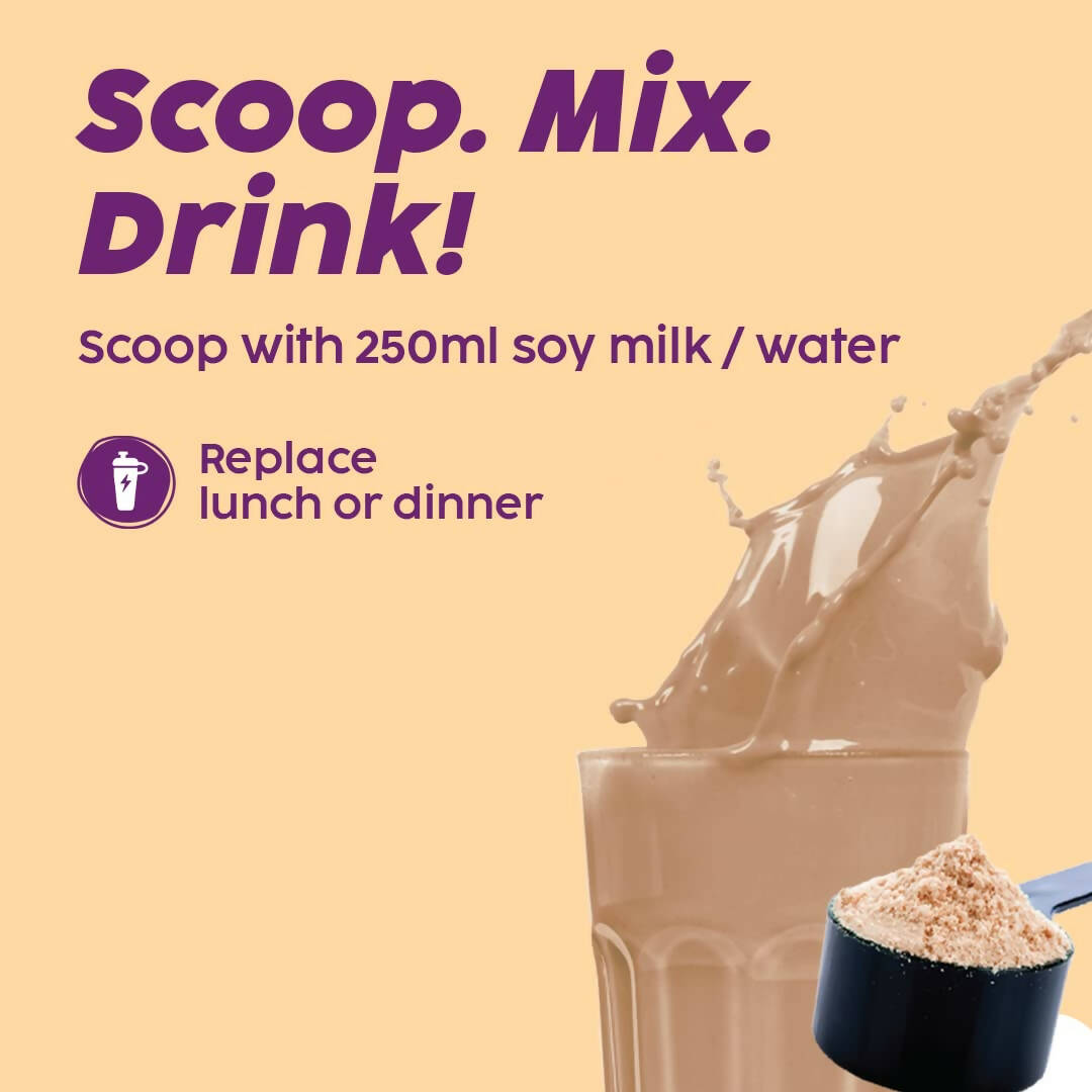 • Add a SCOOP of the smoothie powder in 250ml of water, SHAKE it for 15-20 seconds and SIP in all the nutrition.