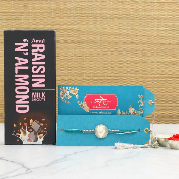 Black Panther Rakhi & Amul Raisin N Almond Chocolate Combo: