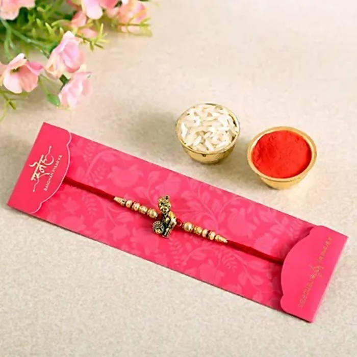 • This ethnic rakhi highlights Lord Krishna for a holy look