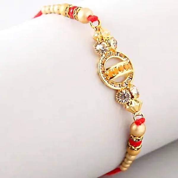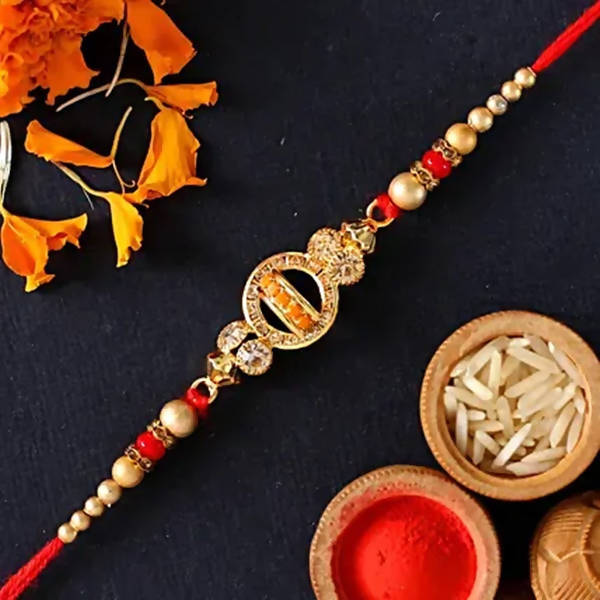 • This ethnic rakhi showcases meenakari work for a traditional look