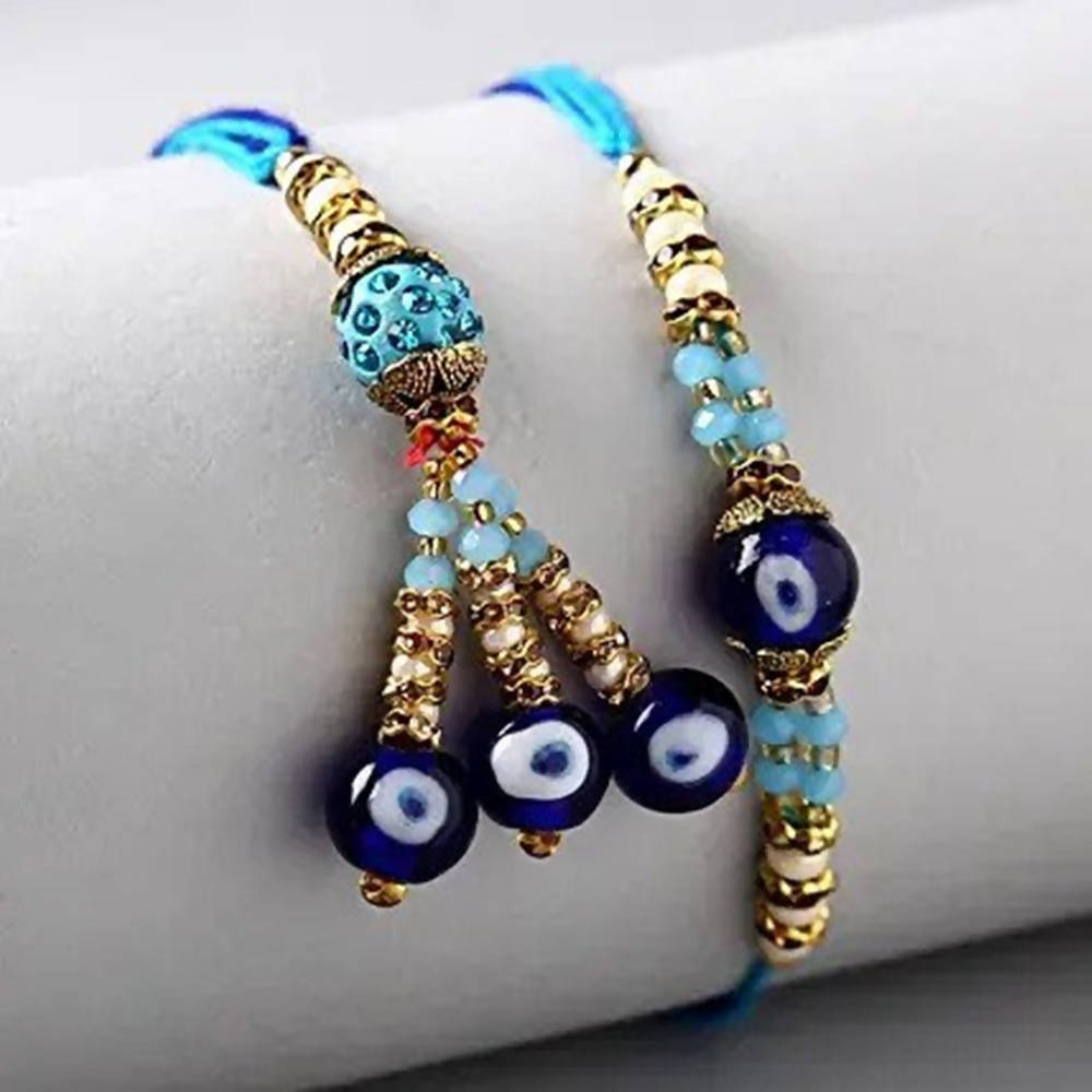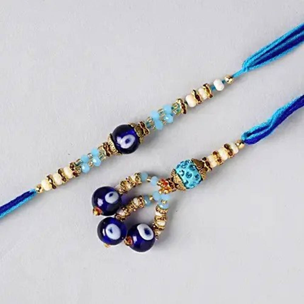 • One Evil Eye Bhaiya Bhabhi Lumba Rakhi Set