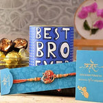 Krishna Raag Rakhi N Chocolate Dipped Khajoor LadduProduct Details: One Krishna Raag Rakhi This rakhi showcases Lord Krishna for a spiritual look C...