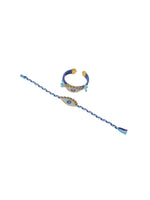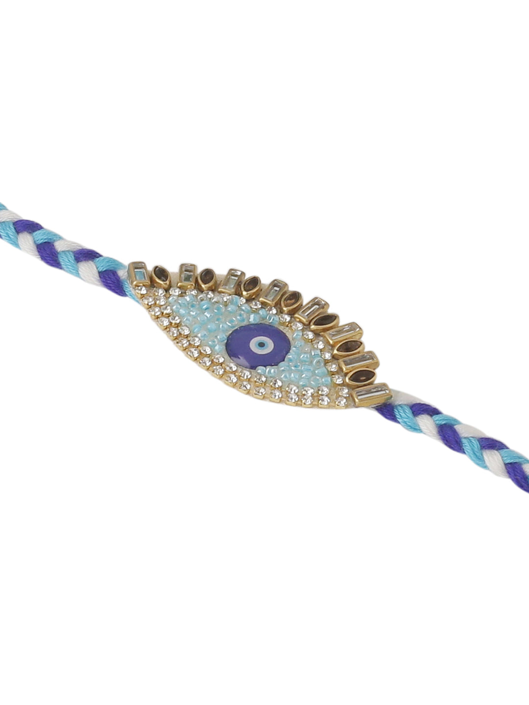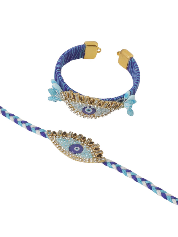 NVR Set of 2 Blue Evil Eye & Kundan Studded Handcrafted Bhaiya Bhabhi Rakhi Combo
