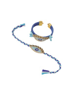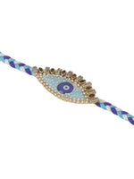 NVR Set of 2 Blue Evil Eye & Kundan Studded Handcrafted Bhaiya Bhabhi Rakhi Combo - Free Size
