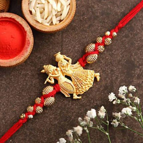 Radha Krishna Design Rakhi and Kaju Rolls Box Combo:Product Details: One Radha Krishna Rakhi This devotional rakhi highlights radha krishna for a p...