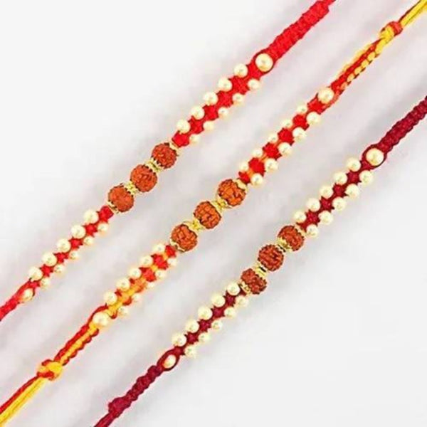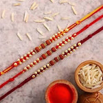 Set of 3 Sleek Rudraksha Rakhi and Cashew Jar: Combo Product Details: Rudraksha Rakhi- Set of 3 These designer rakhis showcase rudraksha detailing ...