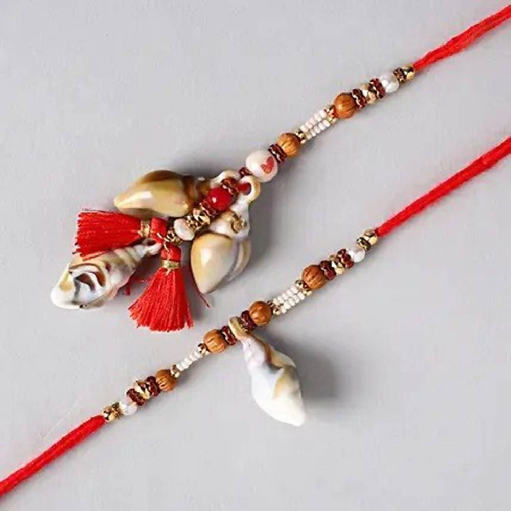 Shell Lumba Rakhi Set & Dairy Milk Chocolates: Combo PackOne Bhaiya Bhabhi Lumba Rakhi Set This rakhi set is intricately designed with shells f...
