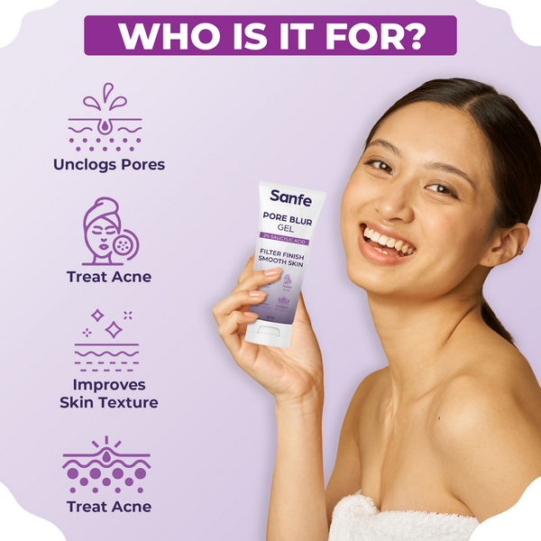 Sanfe Pore Blur Gel About the product:Quickly minimizes the appearance of pores and fine lines for smoother-than-smooth skin. Apply the silky, ligh...