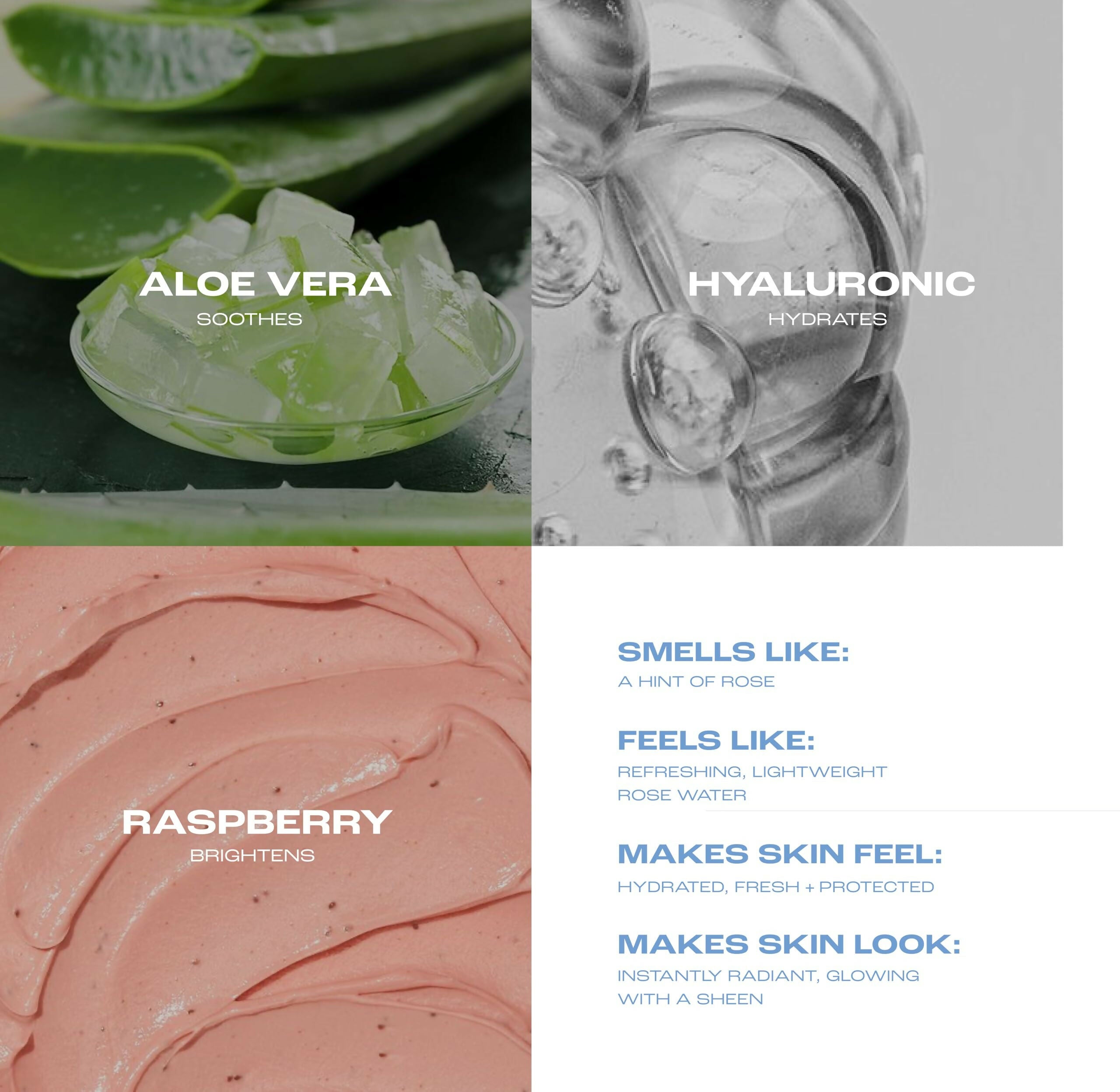 • Based in Rosewater: Hydrates and tones for a radiant complexion.