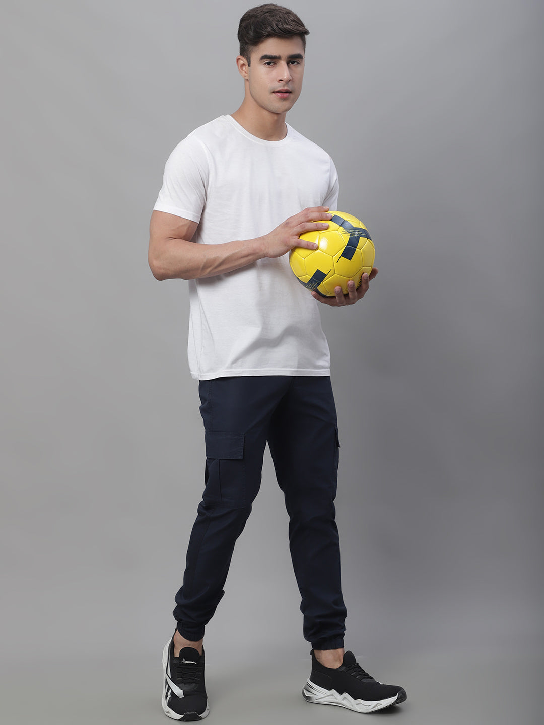 Jainish Men's Casual Cotton Solid Cargo Pants - Navy Blue