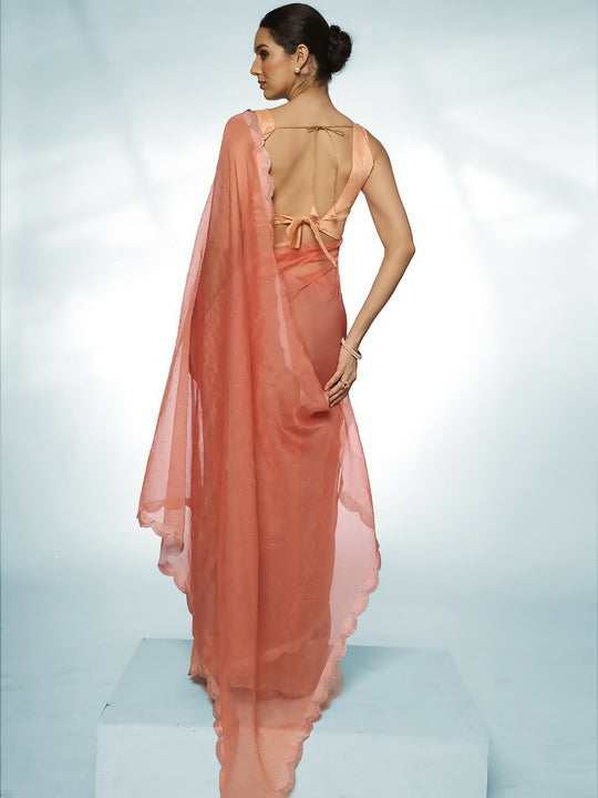 Orange Organza Swarovski Designer Saree - Shezlin Saree Color: Orange Blouse Color: Orange Saree Fabric: Organza Blouse Fabric: Art Silk W...