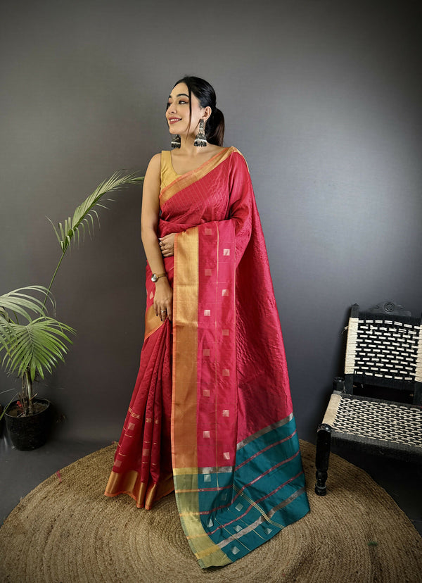 Joban Fashion Hot Pink Bhagalpuri Cotton Silk Stripes/Box Saree Saree Fabric: Cotton Silk Saree Color: Hot Pink Saree Work / Design: Stripes...