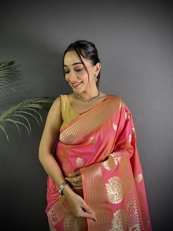 Joban Fashion Light Pink Banarasi Soft Lichi Silk Paisley Saree