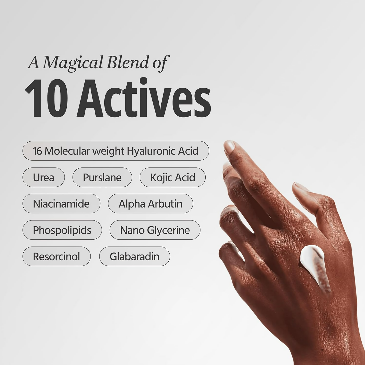 • Alpha Arbutin: Sourced from China - lnhibits melanin production, Targets dark spots dipotassium.