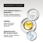 Contains stabilized Vitamin C, peptides, hyaluronic acid, and Vitamin B5.