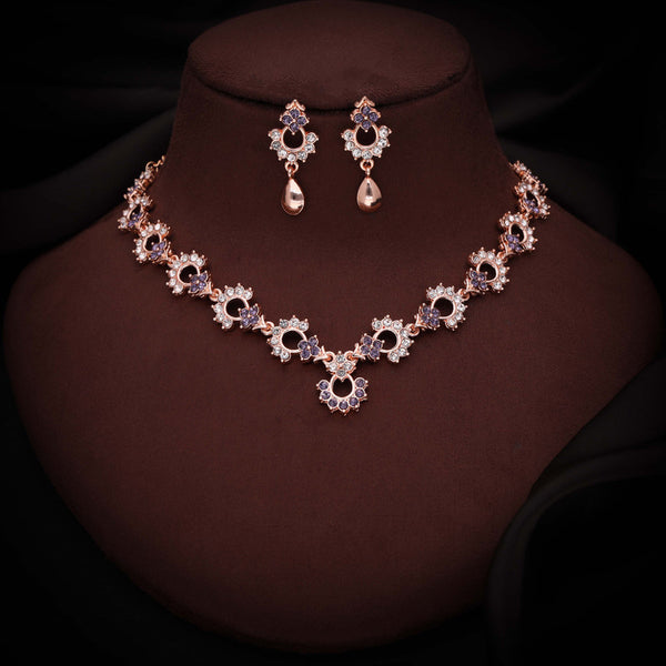 Tehzeeb Creations Gold-Polished Lavender Diamond Necklace With Earrings