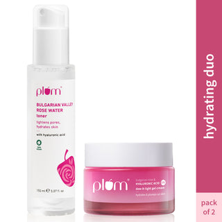 Plum 1% Hyaluronic Acid & Bulgarian Rose Toner & Moisturiser Combo For Hydration & Plumpy Skin